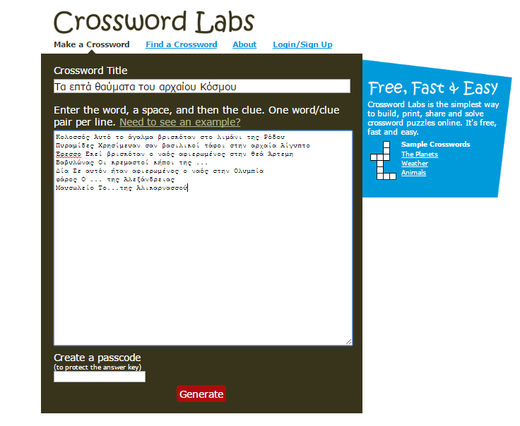 Χωρίς το άγχος της αξιολόγησης παίξτε και μάθετε από τα λάθη σας. Καλή πλοήγηση.
