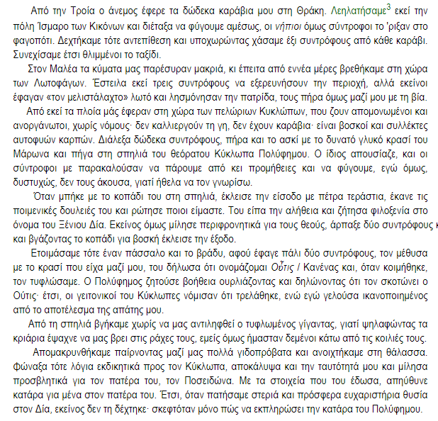 Μάθημα : ΑΡΧΑΙΑ ΕΛΛΗΝΙΚΑ Α' (δοκιμαστικό μάθημα)