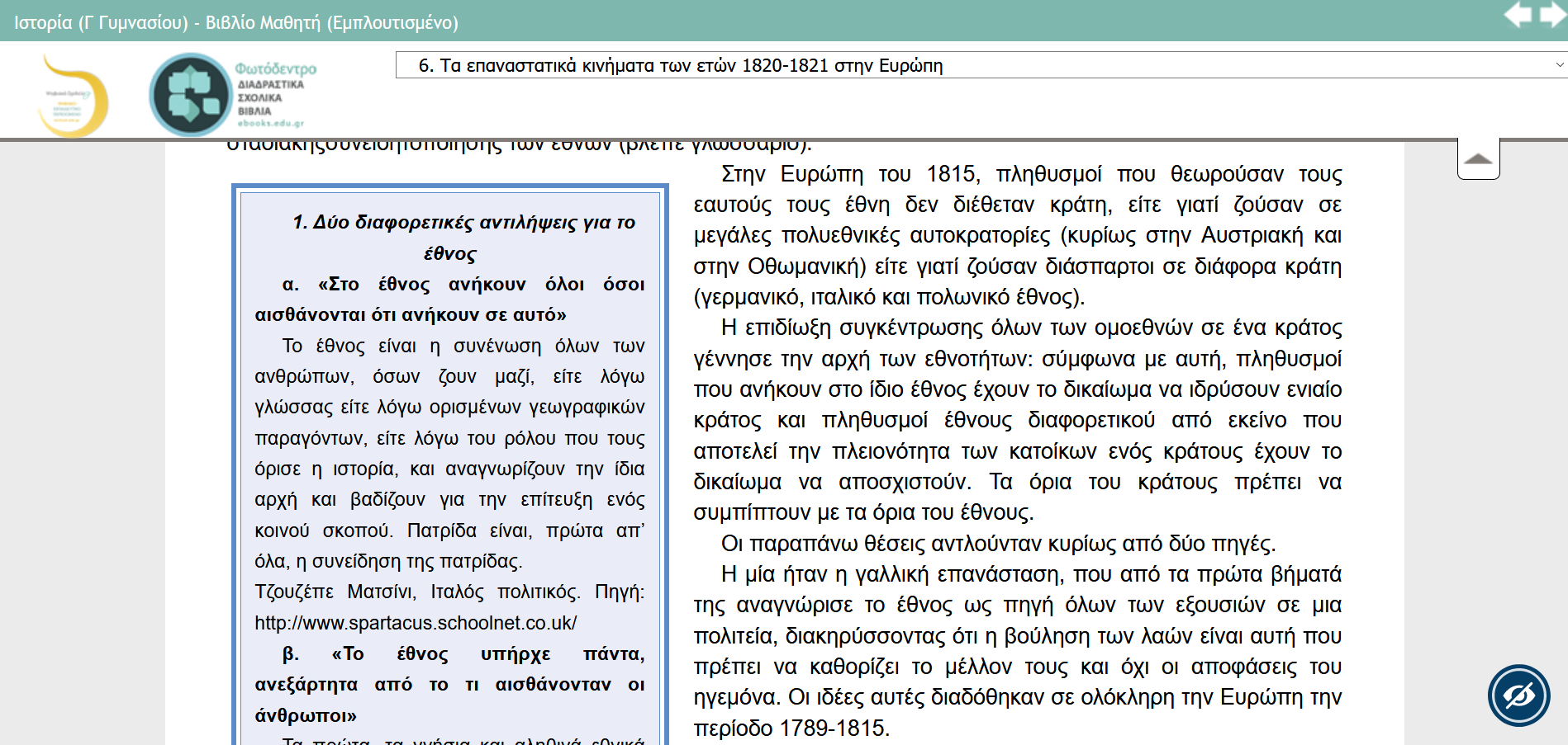 | ΕΝΟΤΗΤΑ 6η Διάβασε για την αρχή των εθνοτήτων που επηρέασε τα επαναστατικά κινήματα των ευρωπαϊκών λαών τον 19ο αιώνα Δημιουργός: ΒΑΣΙΛΙΚΗ ΓΑΣΤΕΡΑΤΟΥ |