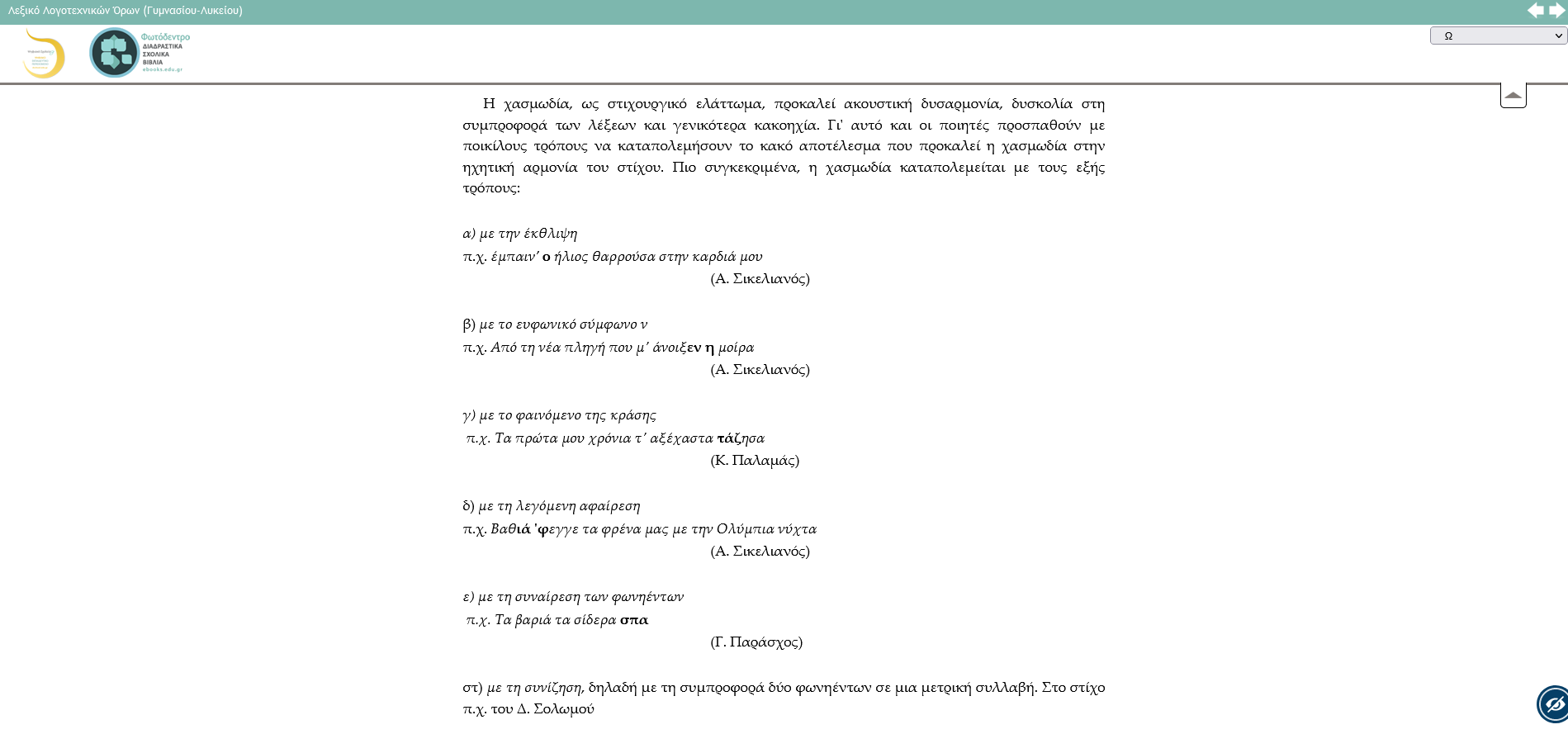 | ΧΑΣΜΩΔΙΑ-ΟΡΙΣΜΟΣ Δημιουργός: ΛΕΞΙΚΟ ΛΟΓΟΤ. ΟΡΩΝ |