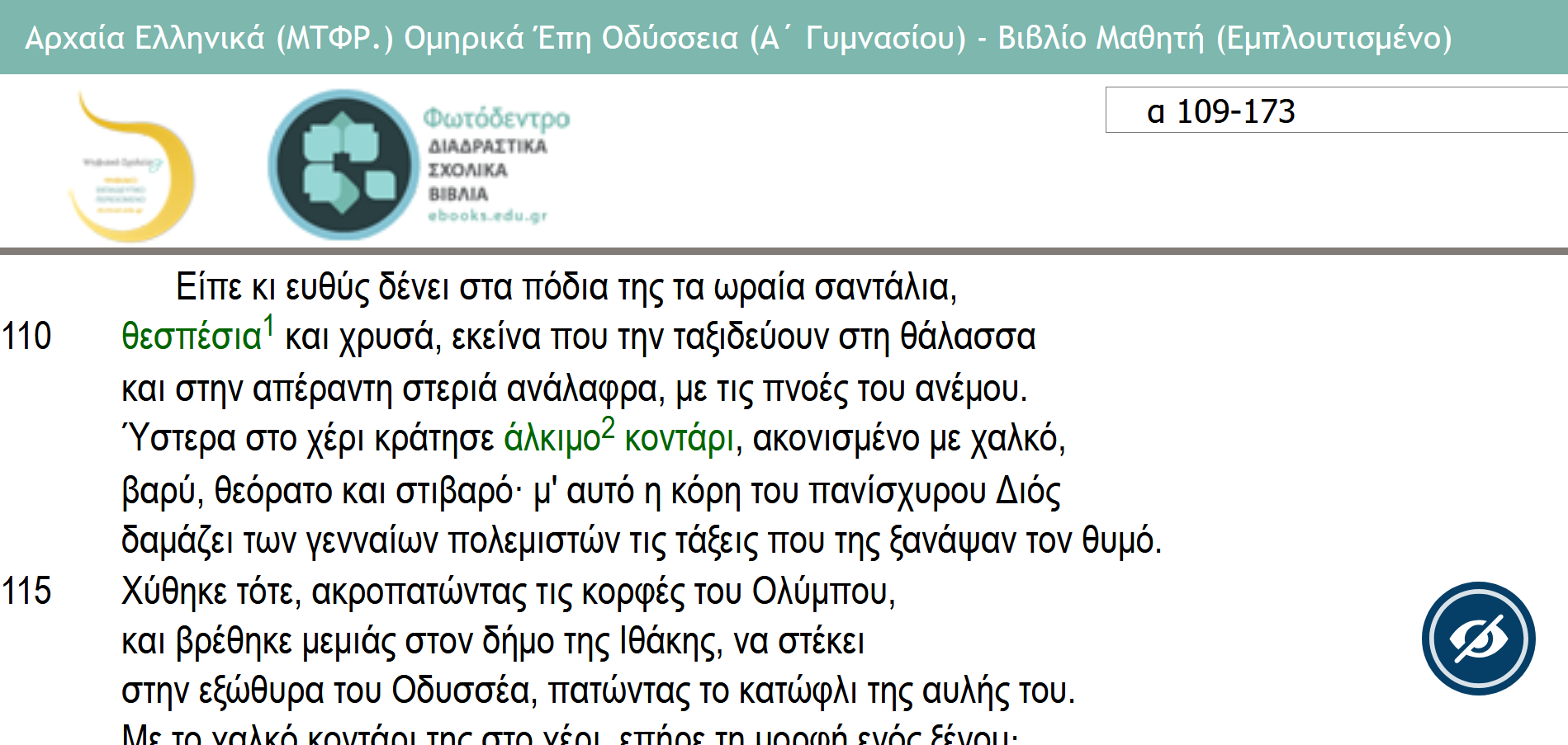 Μάθημα : ΟΔΥΣΣΕΙΑ Α' ΓΥΜΝΑΣΙΟΥ